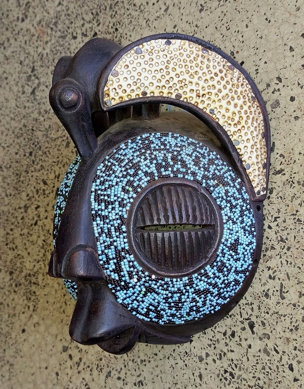 Kifwebe Congo Hand beaded African Tribal Mask with Metallic Plate Embellishment,