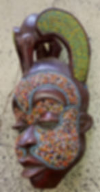 African Handmade Elongated Face Bird Wooden Sese Mask from Congo - Multi Color B