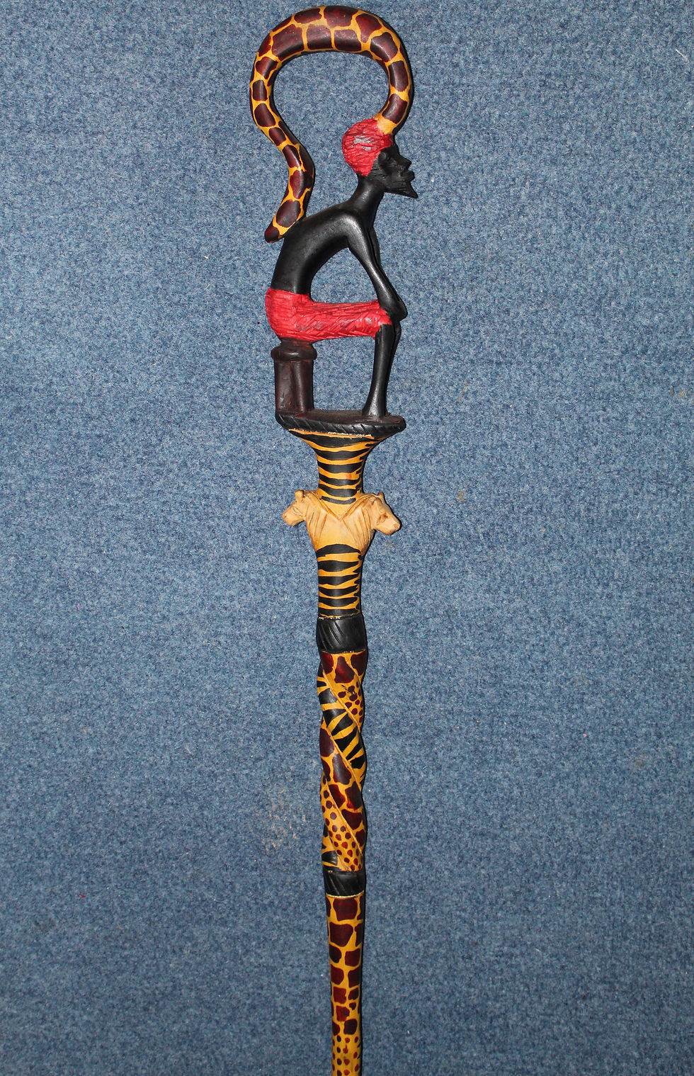 African Hand-Carved Walking Stick/Walking Cane/ Decorated Decorative Wood Art Wa